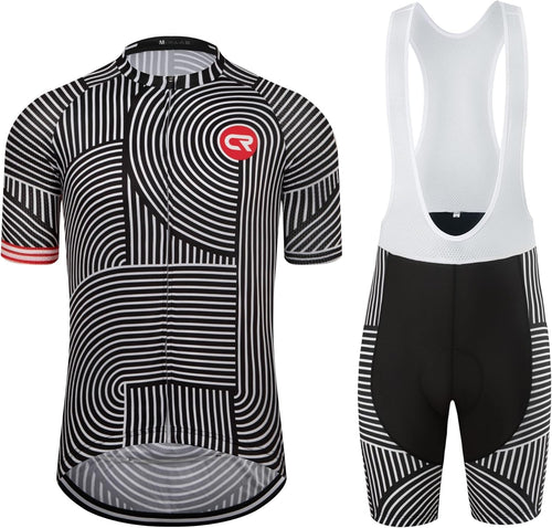 CR Men's Cycling Jersey Set Road Bike Jersey Zipper Pocket Short Sleeves Cycling Kits Bib Shorts 3D Padded